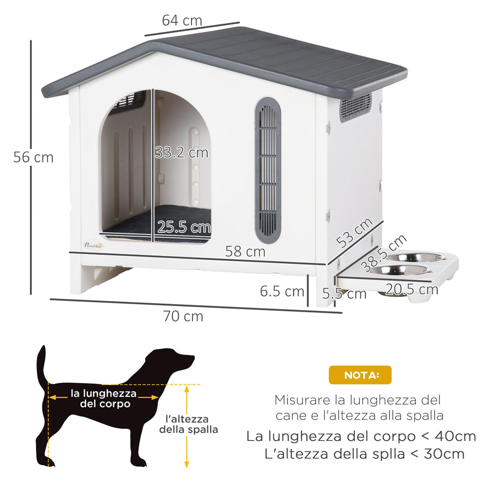 - ABMESSUNGEN: Gesamtabmessungen: 70 L x 64 T x 56 H cm (ohne Schüsselständer). Geeignet für kleine Hunde bis 10 kg, innerhalb von 40 cm Körperlänge, innerhalb von 30 cm Schulterhöhe. Montage erforderlich