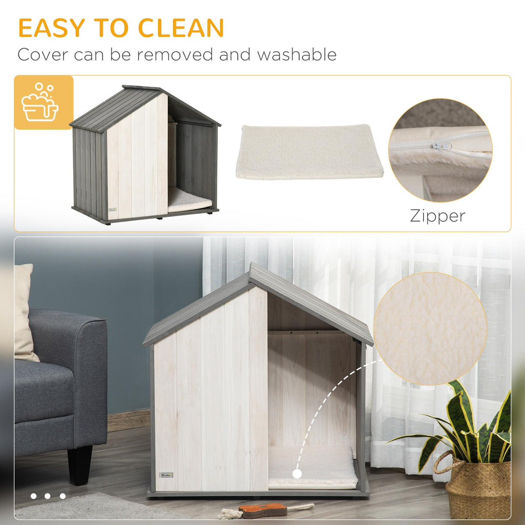 Haus für Hunde 83,5 x 54 x 82,5 cm in grauem und weißem Kiefernholz