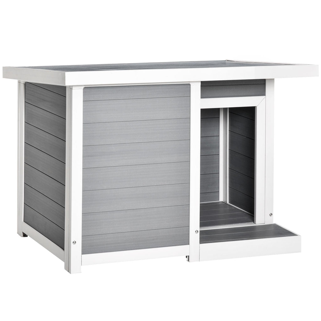 Outdoor Hundehütte 102x70x73 cm in Grau, Weiß WPC