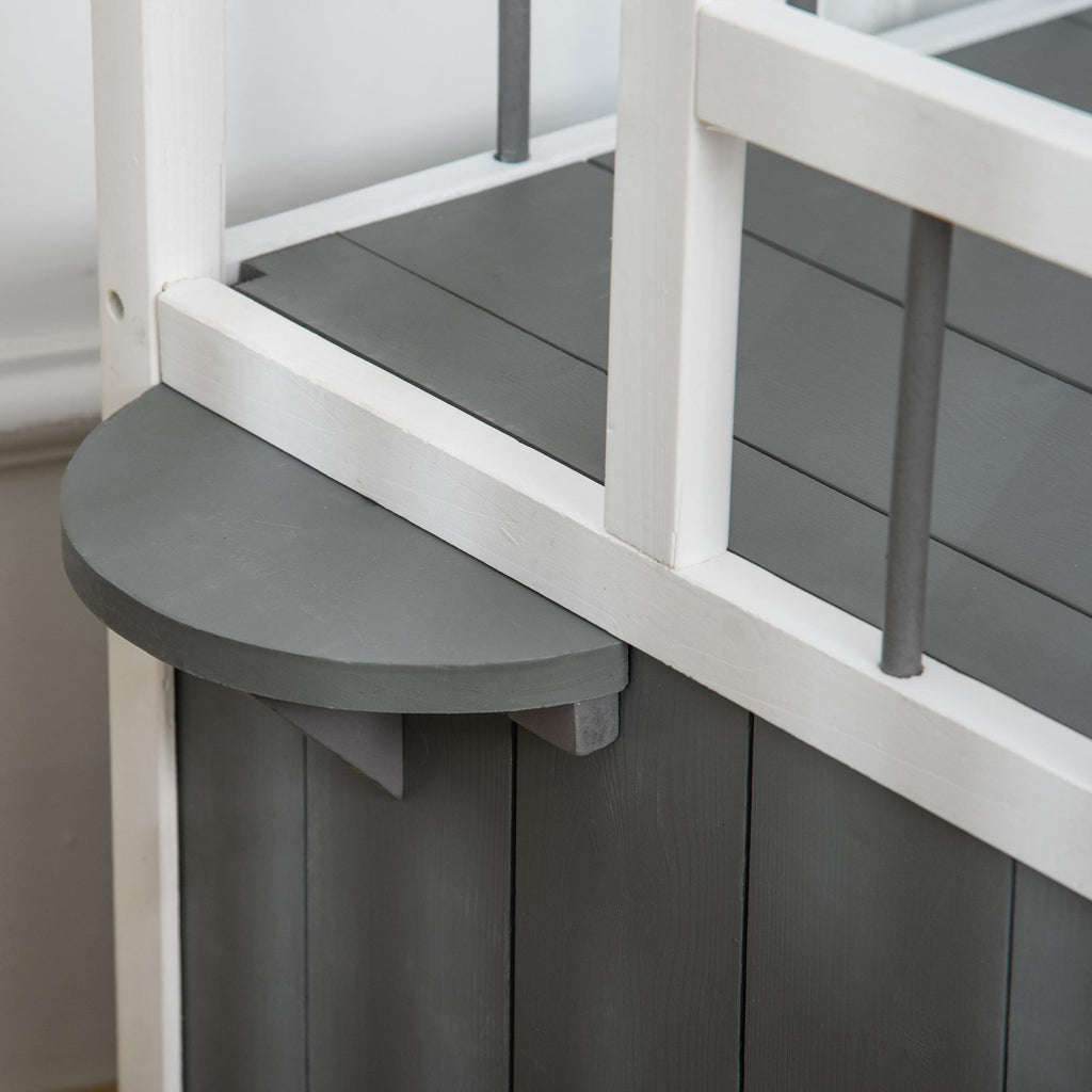 Ihre Katze wird sich auf dieses Katzenhaus freuen. Dieses 2-stöckige Haustierhaus ist für 1-2 Katzen geeignet, damit sich Ihre pelzigen Freunde wohl und sicher fühlen. Das Spielhaus verfügt über 2 Stufen, 2 Türen und einen großen Balkon für einfachen Zugang und Spaß und ist aus Tannenholz für den täglichen Gebrauch. Es wird sicherlich eine großartige Ergänzung für Ihren Garten, Ihre Terrasse oder jeden anderen Unterhaltungsbereich im Freien sein!