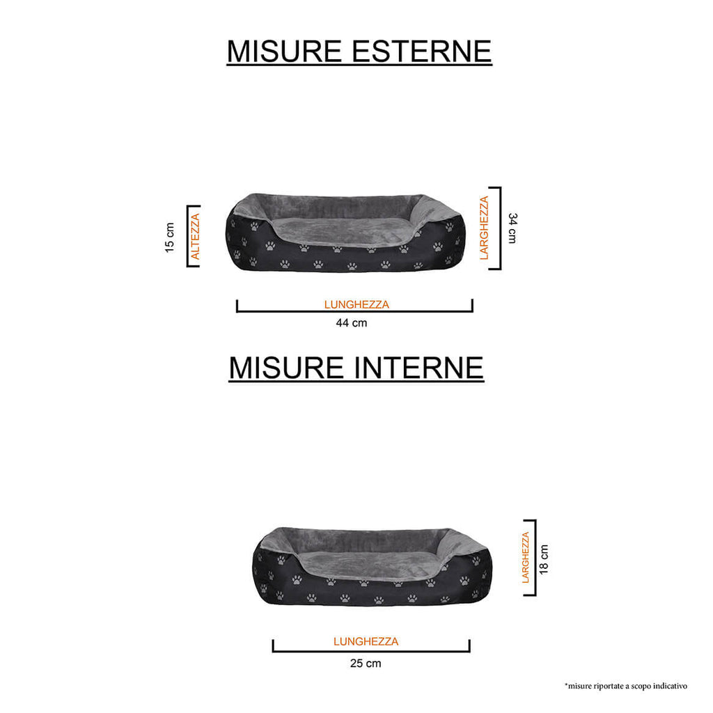 Weich und bequem gepolstertes Bett für Hunde und Katzen, ideal für die Wintersaison. Weich im Griff. Der äußere Teil ist wasserdicht oder wasserdicht, während der innere Teil aus Polyester-Fleece ist, weich und wärmend. Gepolstertes Bett in einem praktischen und bequemen Muster.