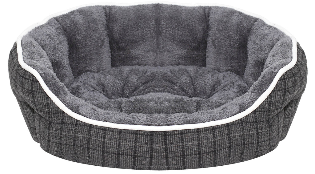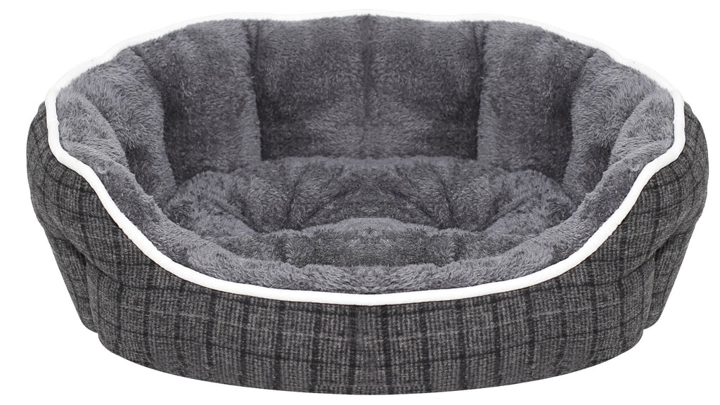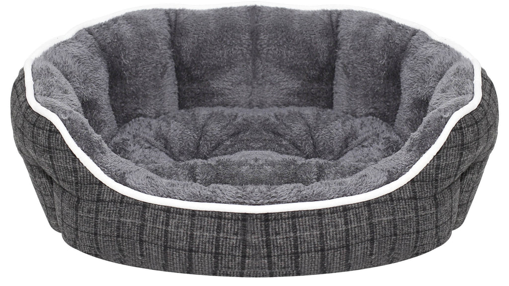Bedrucktes Bett für Hunde und Katzen, weich und wärmend, ideal für die Wintersaison. Der Artikel fühlt sich weich an und der untere Teil besteht aus wasserdichtem und gummiertem Stoff, der es dem Tier ermöglicht, absolut sicher ein- und auszusteigen, ohne dass die Gefahr des Ausrutschens besteht. Gepolstertes Hundebett mit passender Umrandung.