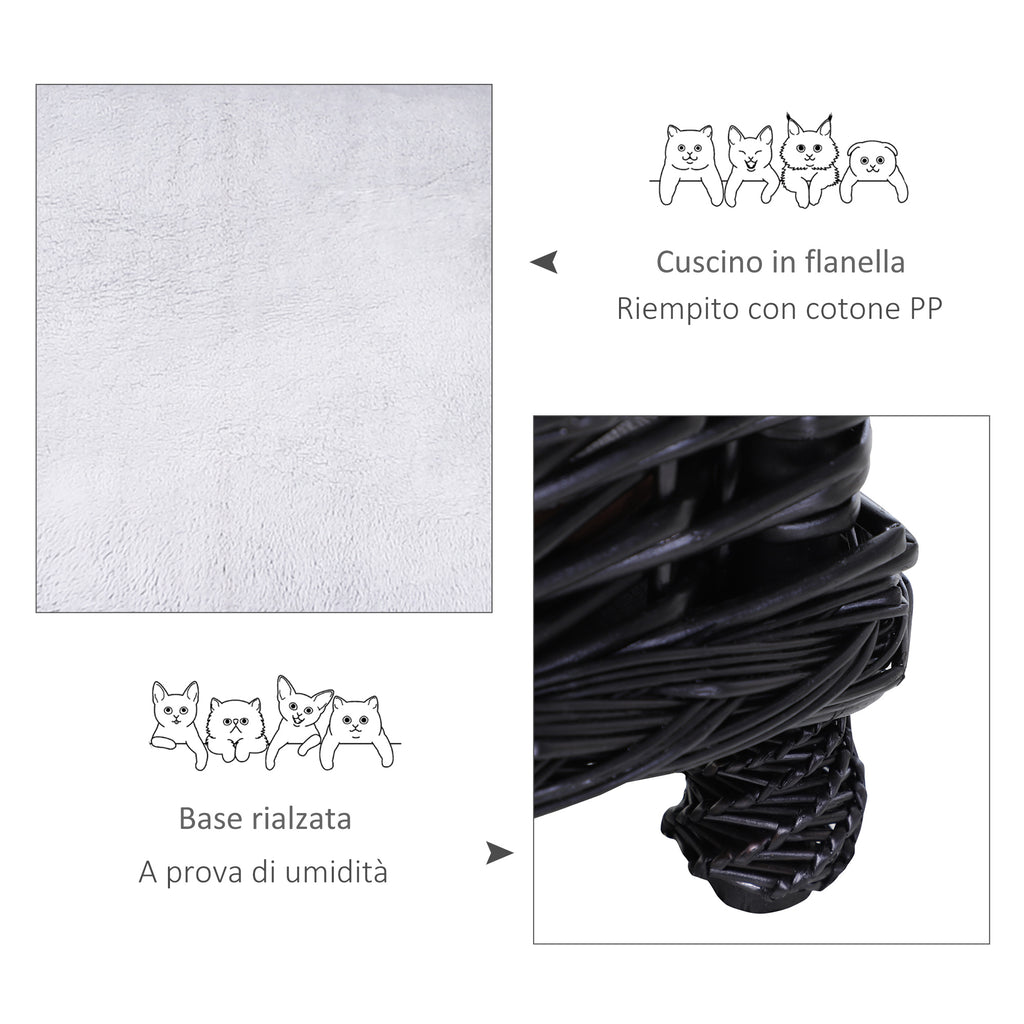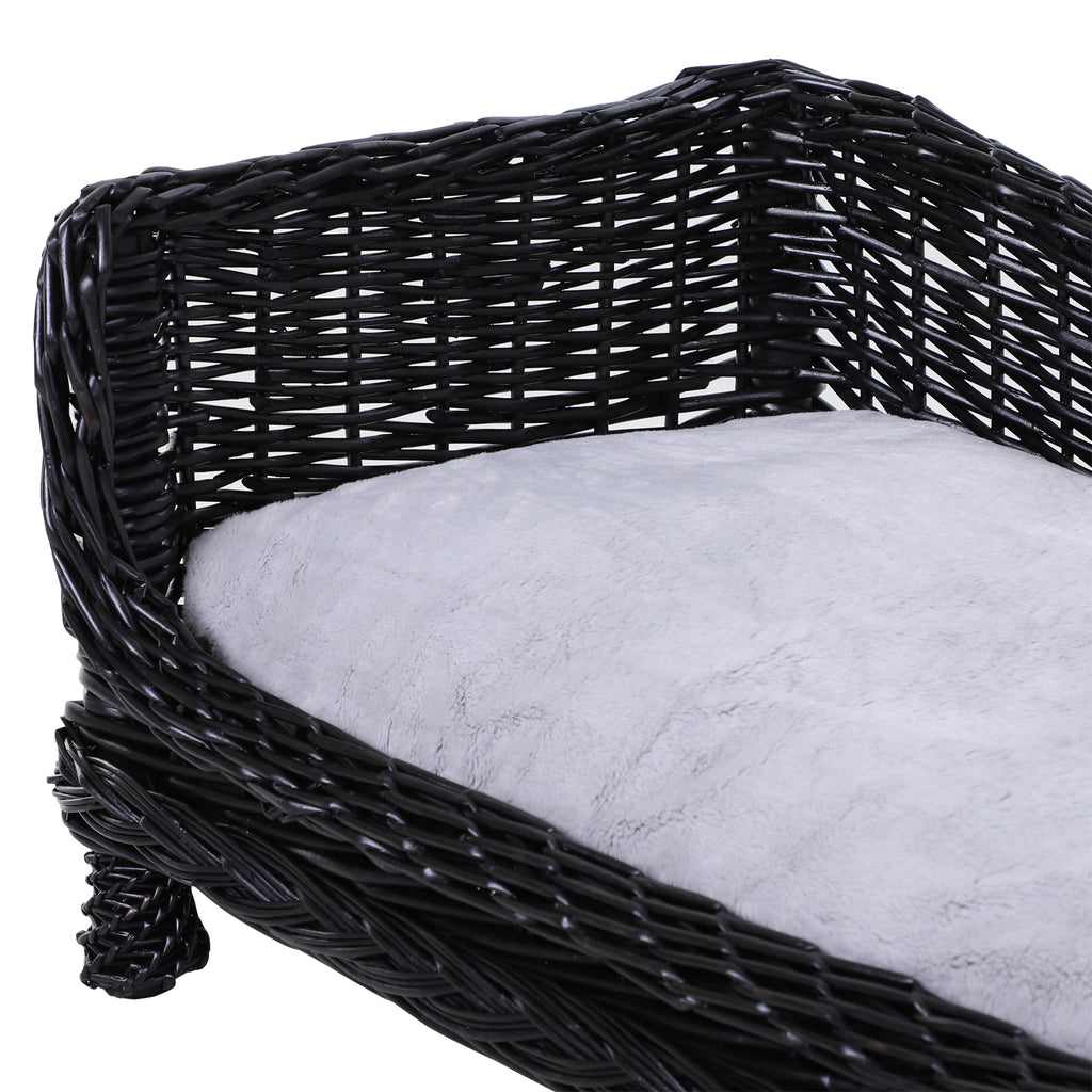 Weidenhütte für Hunde und Katzen mit Kissen 69x42x33 cm Sofa Schwarz