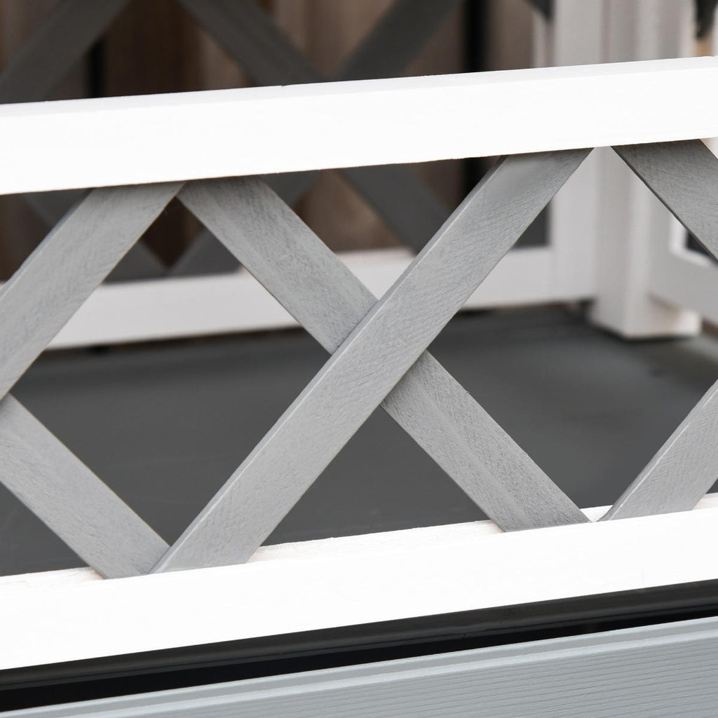 Das Katzenhaus im Freien ist genau das, wonach Sie suchen, um Ihre Katzen zu verwöhnen! Seine zweistöckige Struktur bietet ein komfortables geschlossenes Haus, in dem man sich sicher und ungestört ausruhen kann, während das terrassenförmige Obergeschoss es ihnen ermöglicht, sich zu entspannen und gleichzeitig die Umgebung im Auge zu behalten. Das aus massivem Tannenholz mit wasserfester Farbe gefertigte Katzenhaus für den Außenbereich ist auf Langlebigkeit ausgelegt.