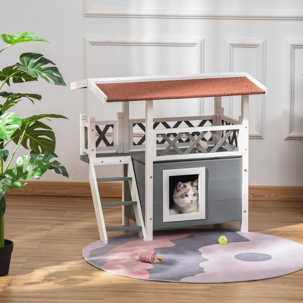 - SOLIDE KONSTRUKTION: Aus Tannenholz gefertigt und mit wasserfester Farbe beschichtet, ist dieses Katzenhaus für den Außenbereich auf Langlebigkeit ausgelegt.