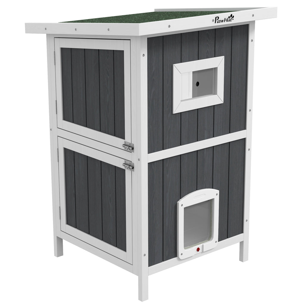 - STRUTTURA IN LEGNO: Grazie alla sua struttura in legno di abete e ai 2 piani disponibili, questa cuccia da esterno è perfetta per ospitare i tuoi gatti.