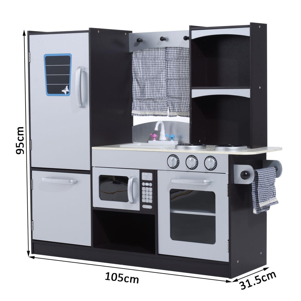 Spielküche für Kinder mit Kühlschrank und Mikrowelle in Schwarz und Grau
