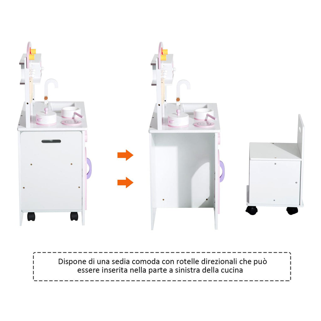 Spielzeugküche für Kinder aus Holz mit Stuhl und Zubehör 60x35x87 cm