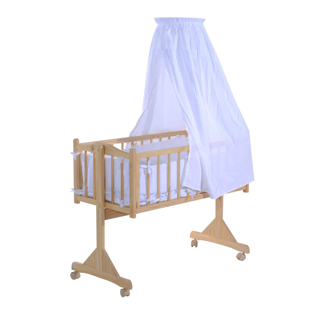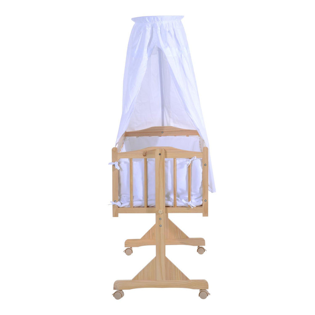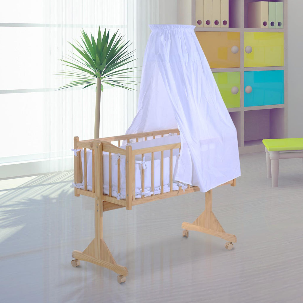 Schaukelwiege für Babys aus Naturholz mit Moskitonetz und Bettwäsche