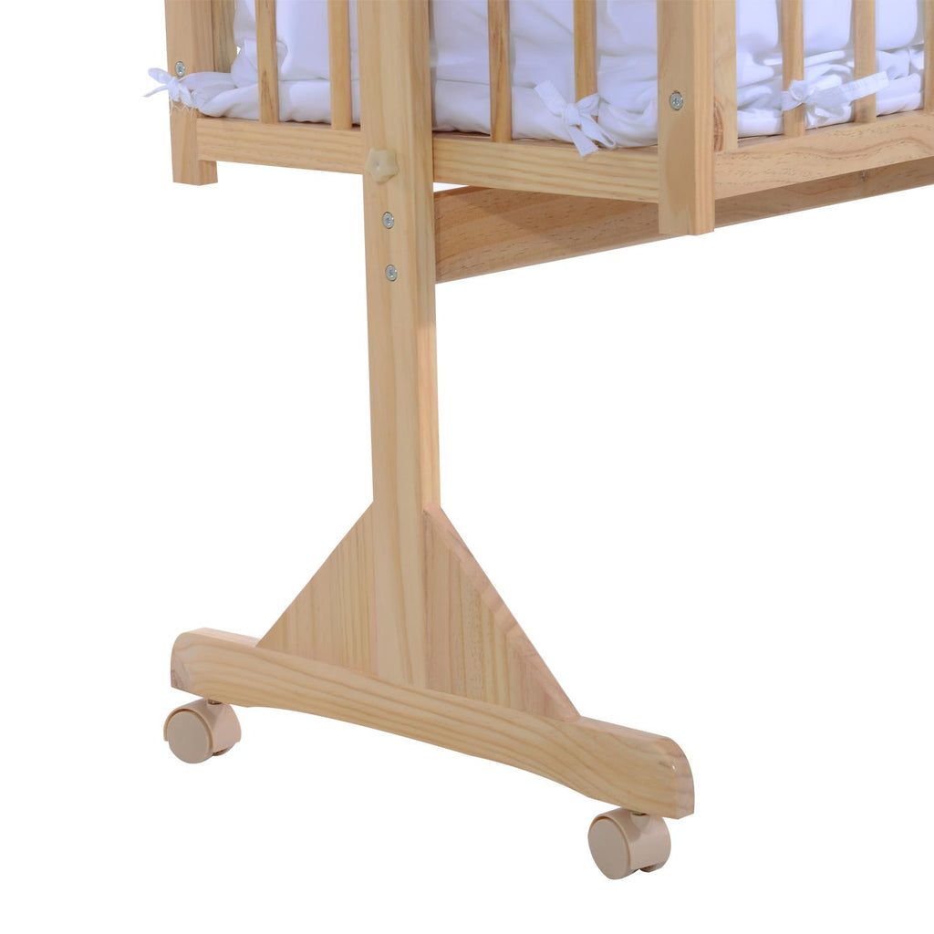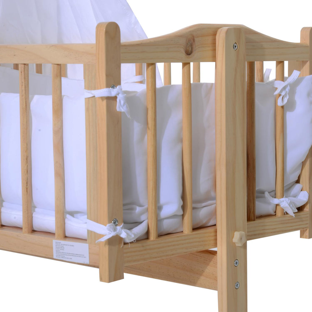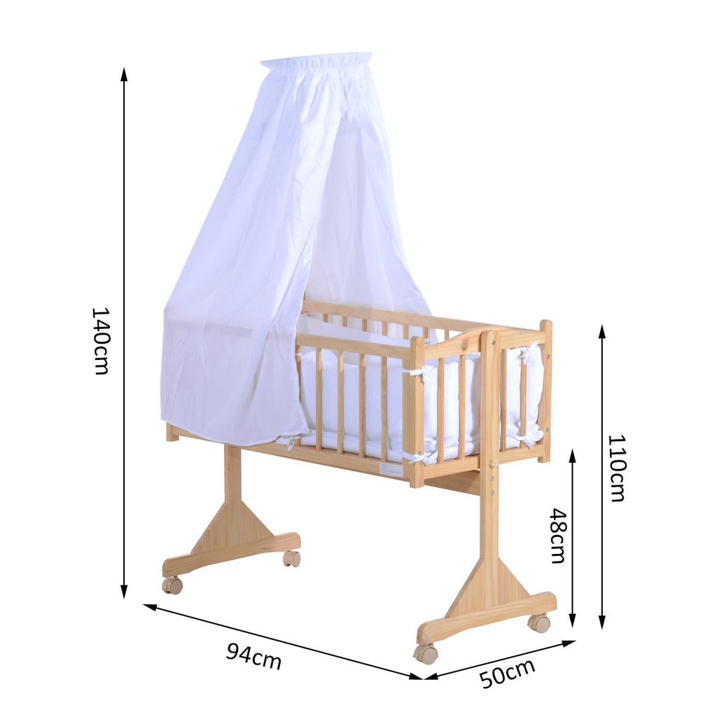 Schaukelwiege für Babys aus Naturholz mit Moskitonetz und Bettwäsche