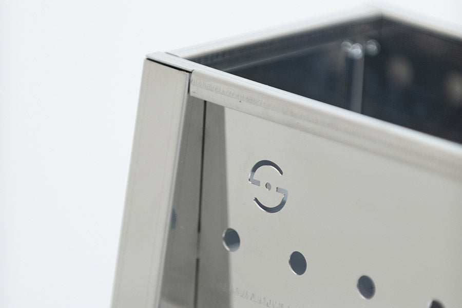 - Ausgestattet mit einem doppelten Boden, um die Luftzirkulation zu erleichtern und die Entfernung der Asche zu erleichtern