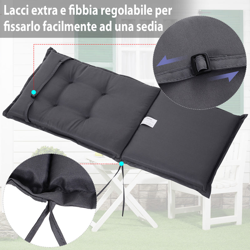 Gepolstertes wasserdichtes Kissen für Stühle und Liegestühle 120x50x6 cm Grau