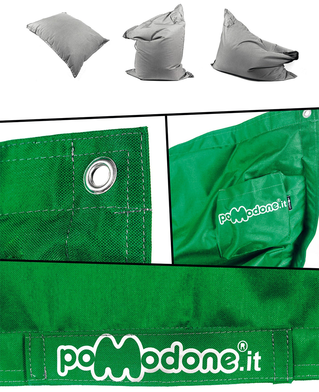 - Die verwendeten Materialien sind feuerfest, absolut wasserdicht und beständig gegen UV-Strahlen und Witterungseinflüsse. Die weiche Polsterung, aus der sie bestehen, macht sie weich und bequem und ergänzt Sitze. Durch ihr geringes Gewicht und den bequemen Seitengriff einfach zu transportieren, lassen sie sich geordnet stapeln und lagern und erfüllen jeden Platzbedarf.