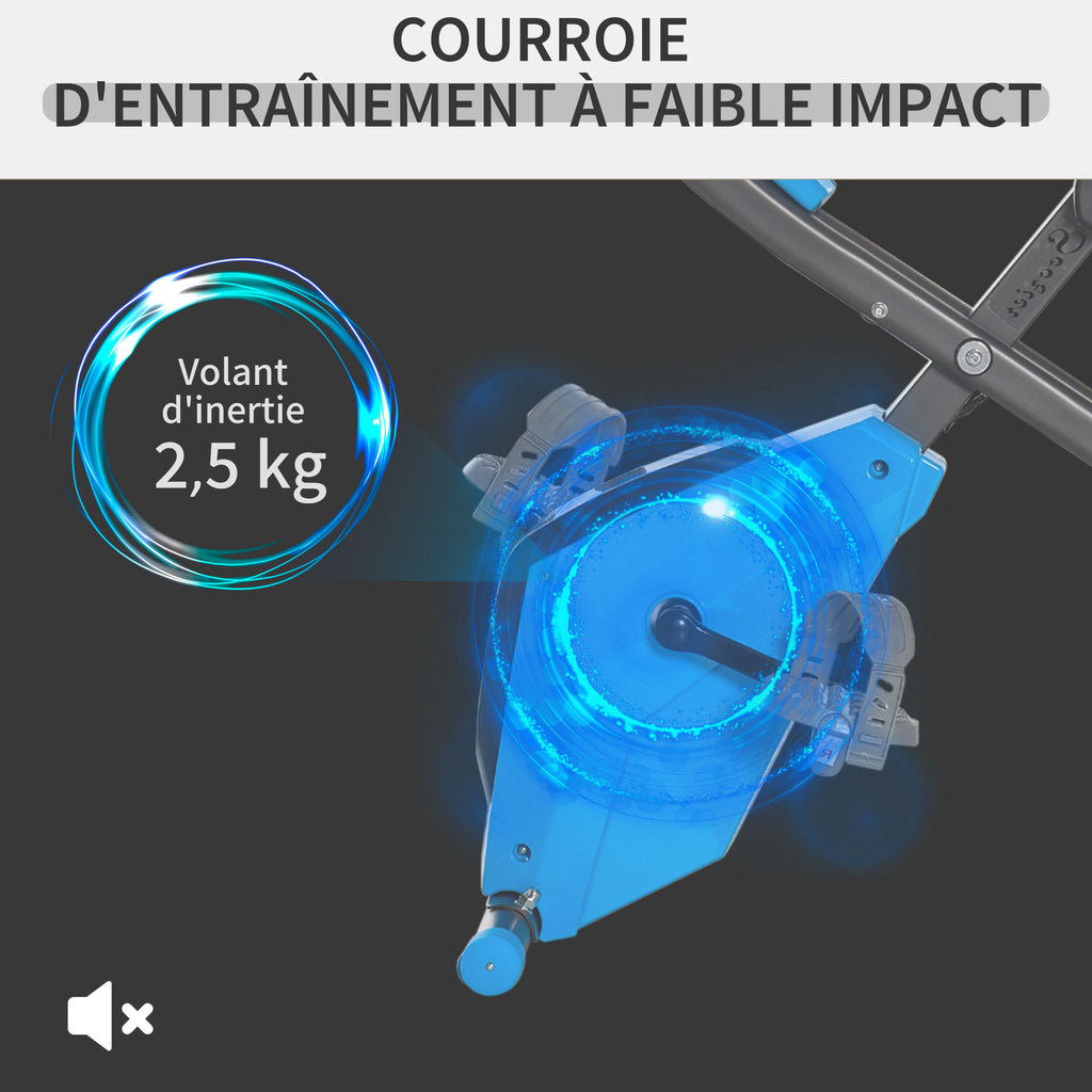 - PIEGHEVOLE, RISPARMIO DI SPAZIO: Cyclette Fitness pieghevole con telaio a forma di X regolabile su 4 livelli per risparmiare spazio quando non è in uso e 2 ruote integrate per un facile spostamento