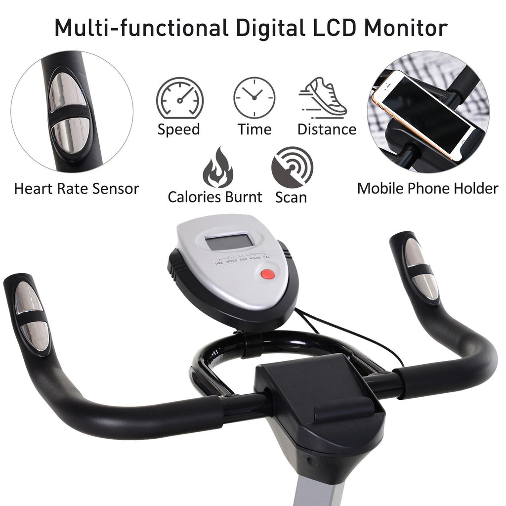 - LCD-Monitor zum Verfolgen von: Gewicht, Geschwindigkeit, Entfernung, Kalorienverbrauch, Herzfrequenz