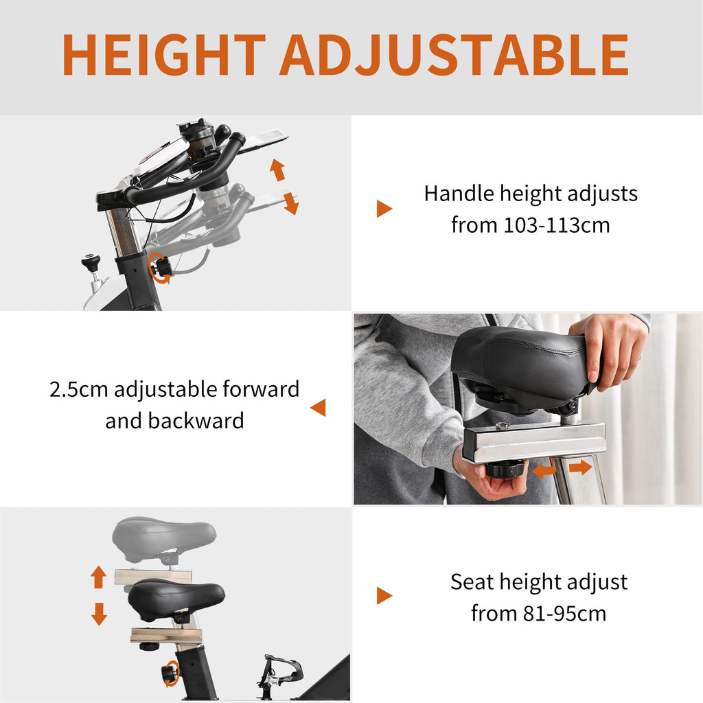 - LCD-DISPLAY UND HANDY-UNTERSTÜTZUNG: Wie bei jedem Spinning-Bike darf ein LCD-Monitor nicht fehlen, um Zeit, Distanz, Geschwindigkeit und verbrannte Kalorien im Auge zu behalten. Darüber hinaus haben Sie auch eine Handyhalterung, damit Sie Ihre Lieblingsvideos während Ihres Trainings ansehen können.