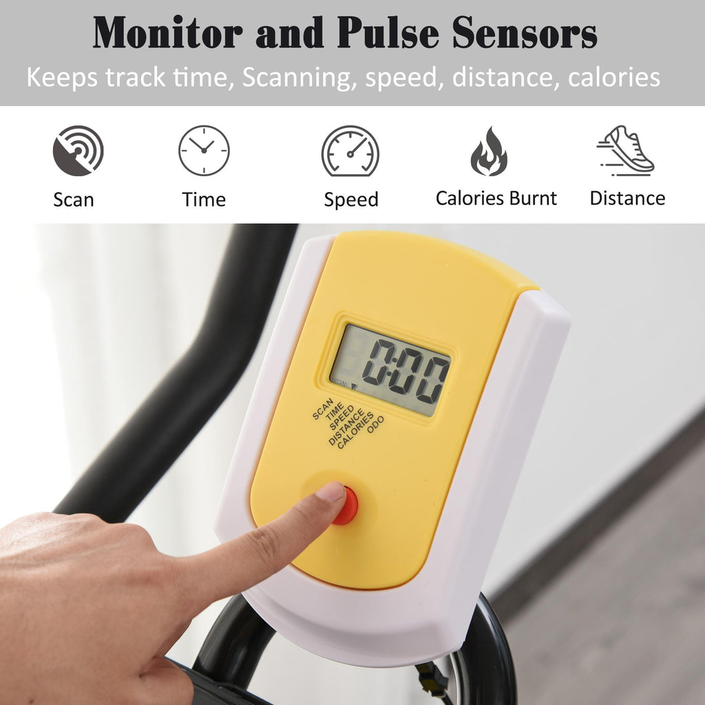 - LCD-MONITOR: Der LCD-Monitor kann Ihre Fitnessstatistiken wie Scan, Geschwindigkeit, Distanz, Zeit und Kalorien aufzeichnen. Mit der Handyhalterung können Sie die Übung und das Video gleichzeitig genießen.