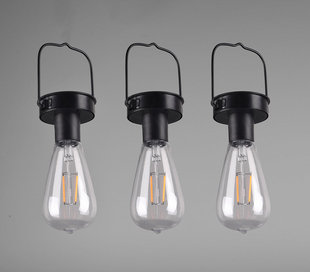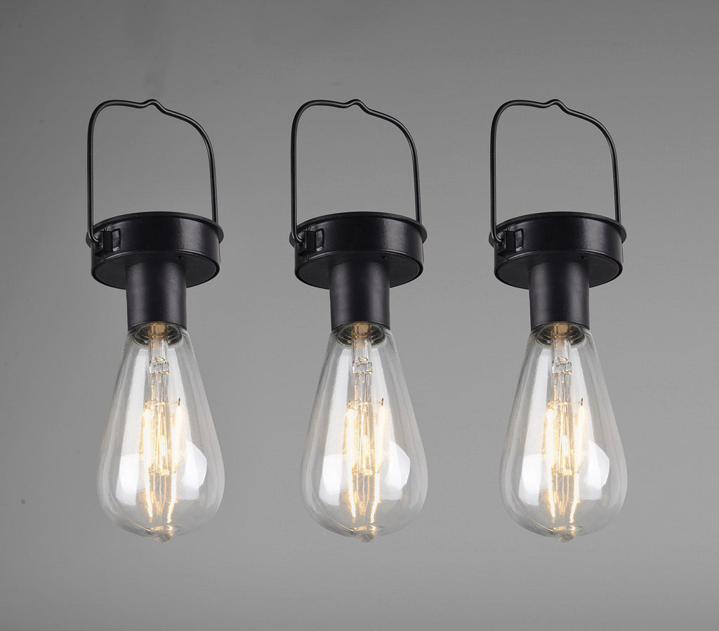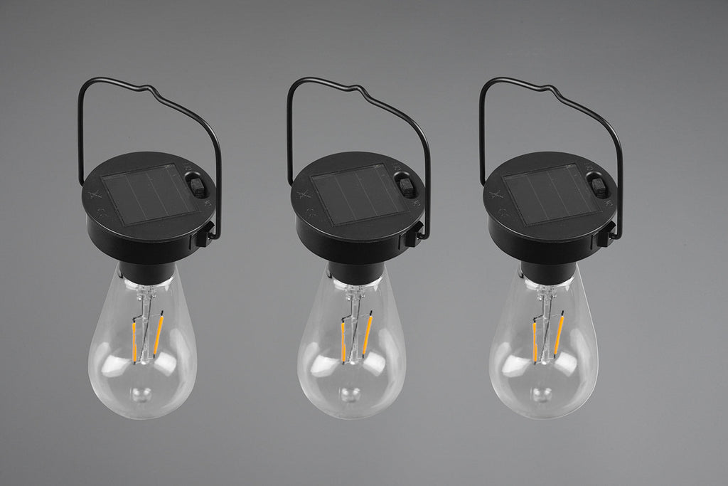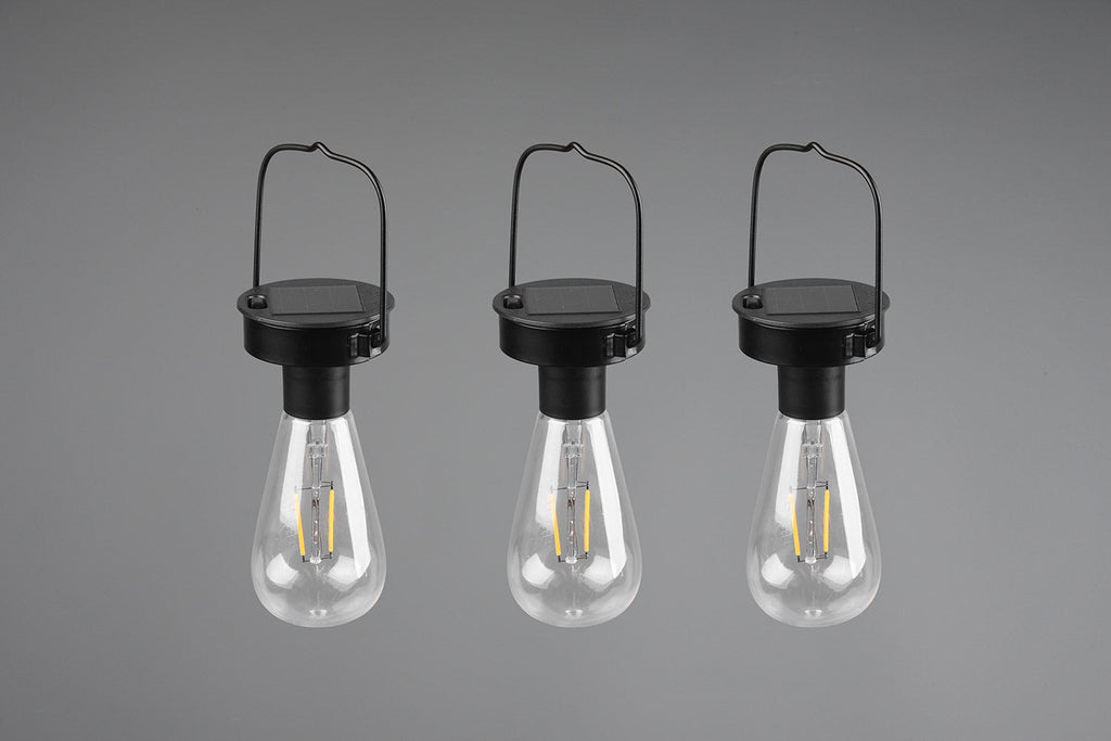 Campus Kit 3 Lampade Led Da Appendere Nere Da Esterno Ip44 Solare Ricaricabile con Sensore Crepuscolare H. 16Cm