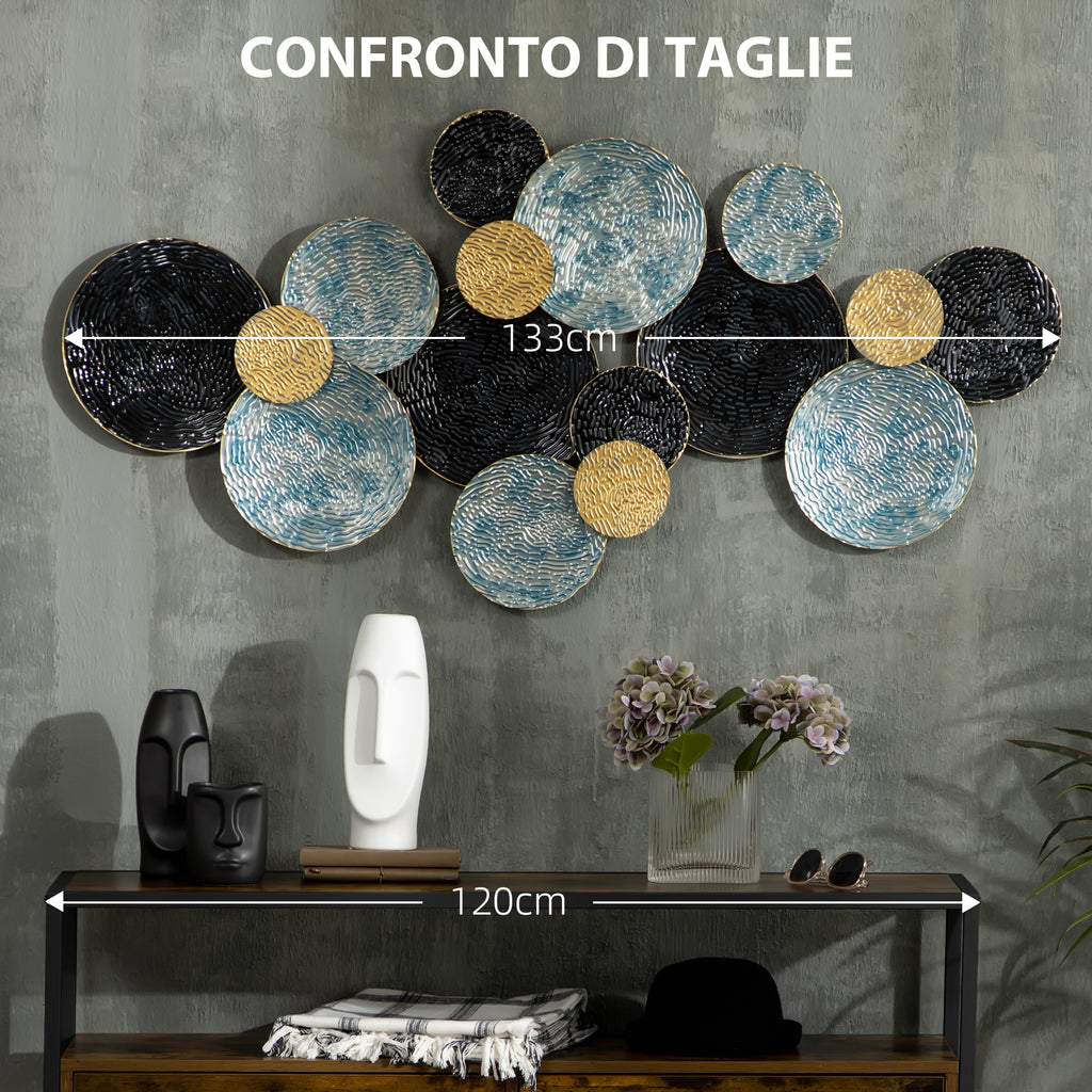 3D Metall Wanddekoration 133x66 cm Blau Schwarz und Gold Kreise Wanddeko