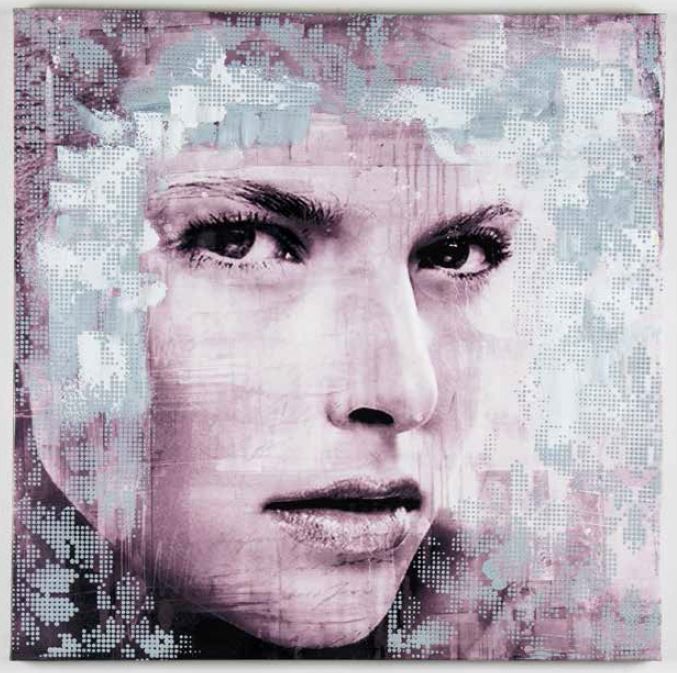 Ölgemälde in Mischtechnik auf Leinwand mit dekorativen Einlagen. Holzrahmen