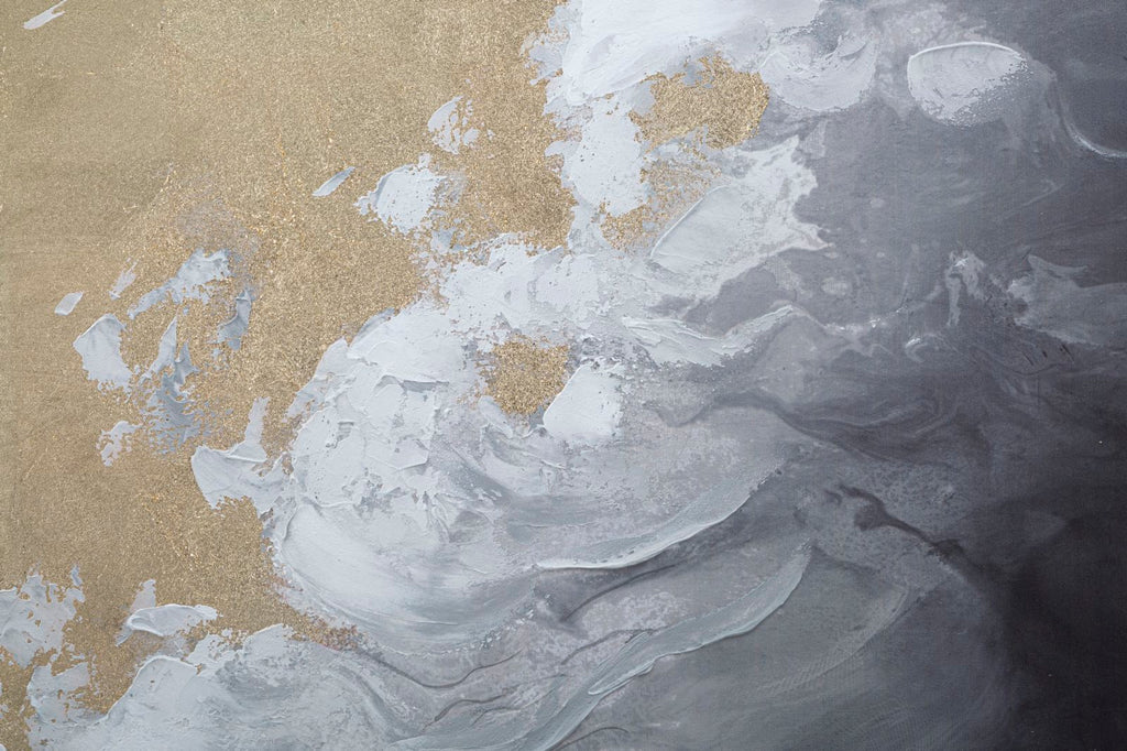 Gemalt auf Leinwand mit Holzrahmen. Originelle abstrakte Gemälde mit hypnotischen Linien, die die Brillanz von Gold mit der Eleganz von Silber und Schwarz kombinieren und einen einzigartigen Stil verleihen. Ein Hauch von Kunst direkt zu Ihnen nach Hause.
