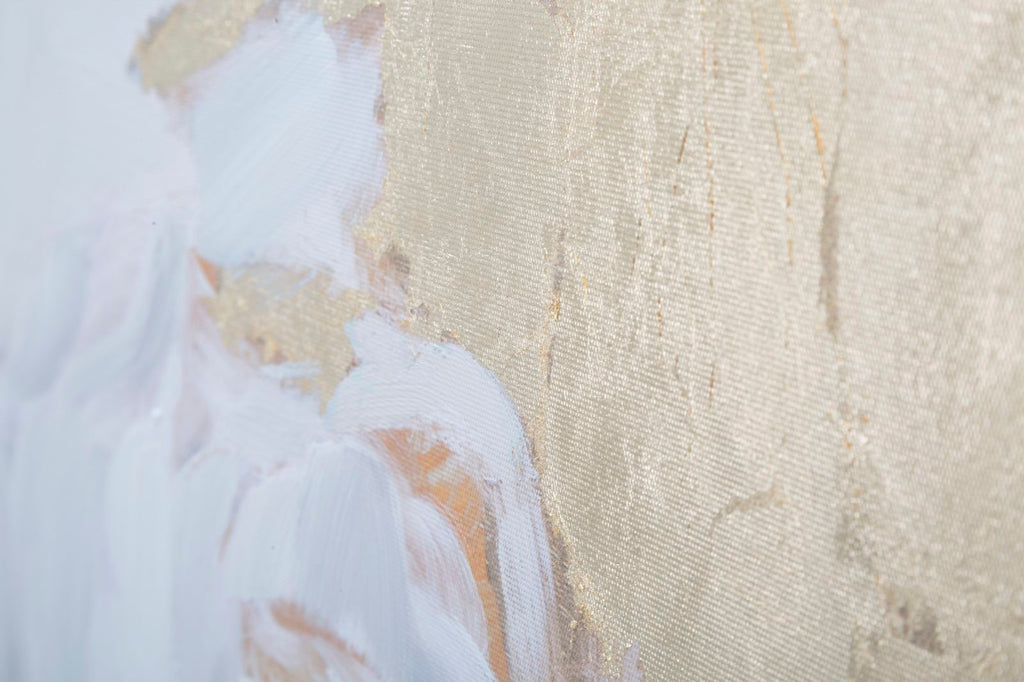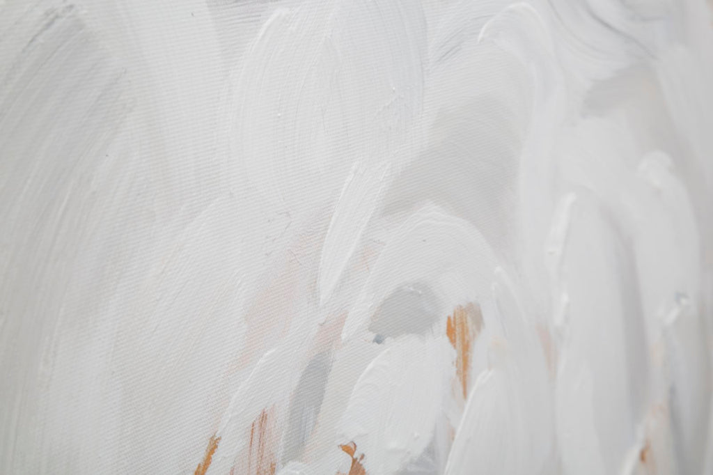 Gemälde auf Leinwand mit Holzrahmen mit floralem Design in Pastelltönen, das jeder Umgebung einen Hauch von Entspannung verleiht.