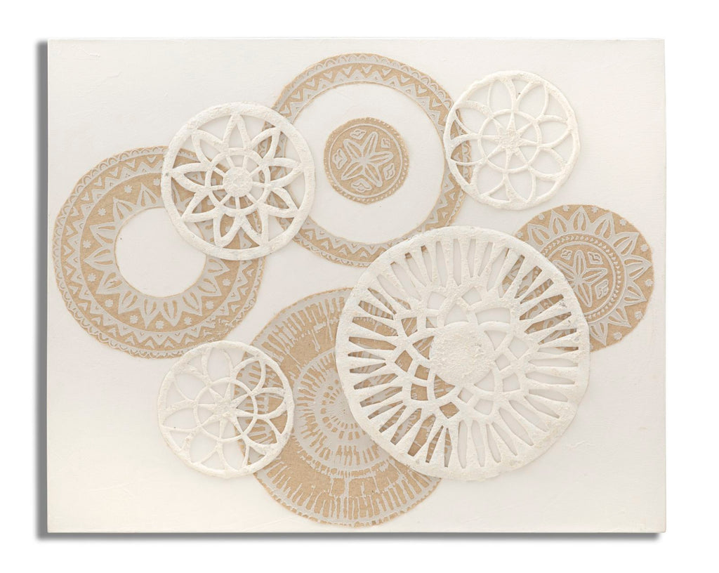 • Caratteristiche tecniche: dipinto su tela, completo di telaio, decorazioni in rilievo, motivi geometrici