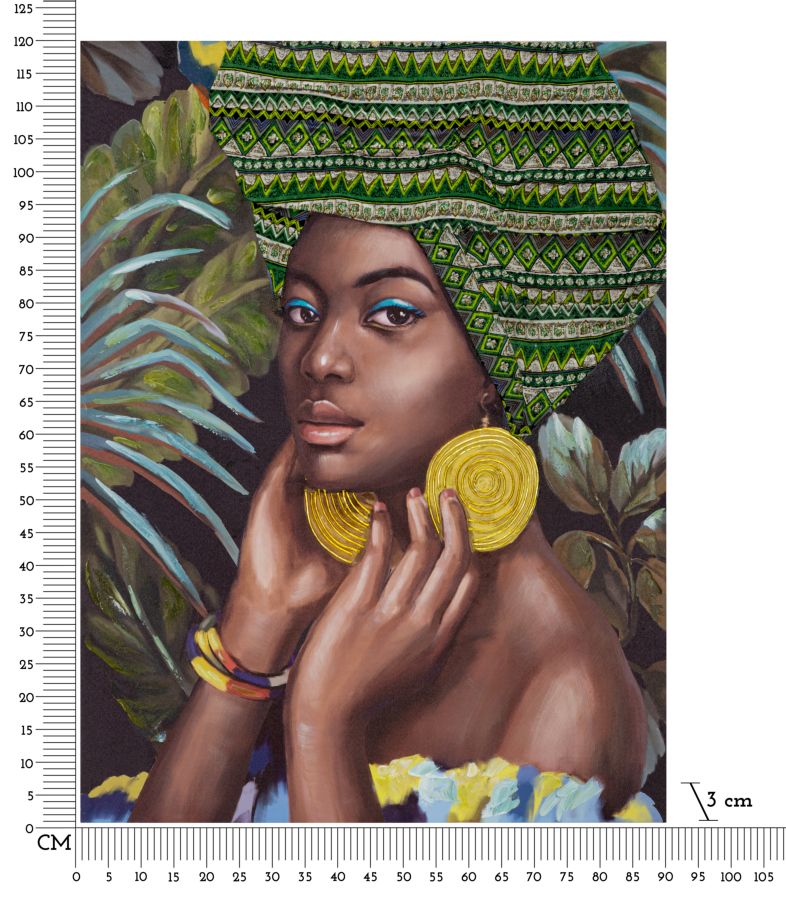 Questa tela dipinta rappresenta un raffinato ritratto di una donna, il suo viso è il fulcro dell'opera. Con una maestria sorprendente, l'artista ha catturato tutte le espressioni e le sfumature della sua bellezza femminile. Il copricapo adorna il suo capo con eleganti applicazioni in tessuto, che aggiungono un tocco di sofisticatezza e stile al dipinto. L'uso sapiente del telaio di legno completa l'opera, fornendo una cornice perfetta per esaltare la delicatezza e l'armonia dell'immagine.