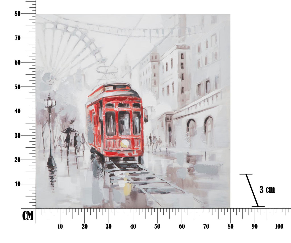 Gemalt auf Leinwand Straßenbahn 80x3x80 cm in Holz und Leinwand
