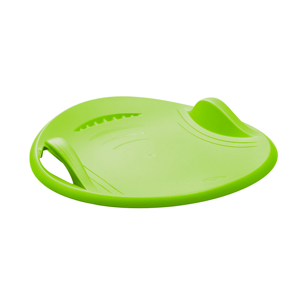 Disco da neve in plastica con maniglie per un'esperienza di slittino sicura e divertente. Le scanalature carving sullo scafo consentono una conduzione eccezionale sulle piste innevate. Il freno integrato, attivabile spostando il peso sulla parte posteriore del disco, offre un maggiore controllo durante la discesa. Disponibile in quattro colorazioni vivaci, il disco misura 60x60x12cm ed è adatto a tutti i ragazzi e gli adulti che amano godersi il divertimento sulla neve.
