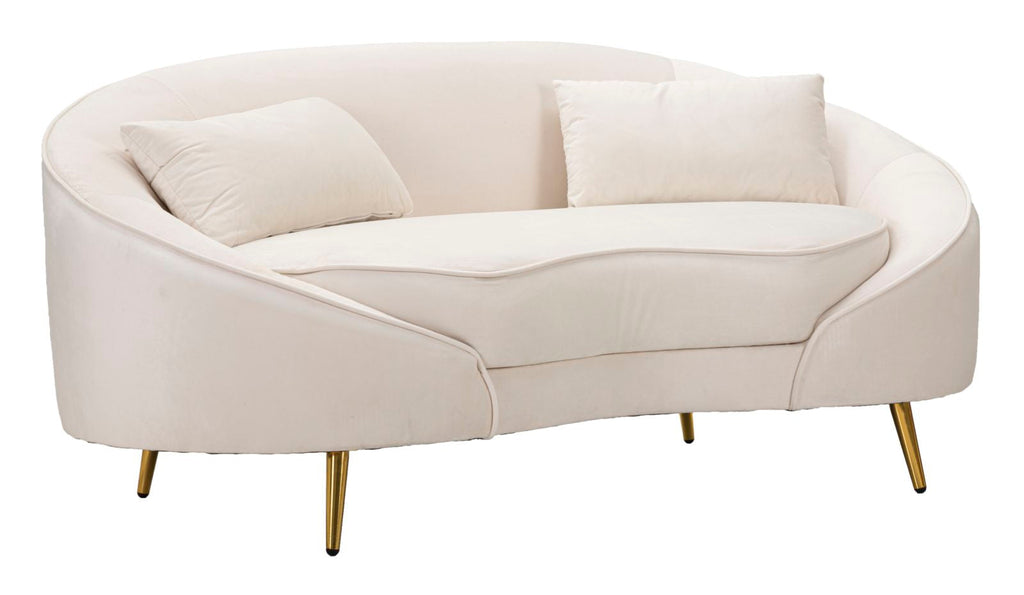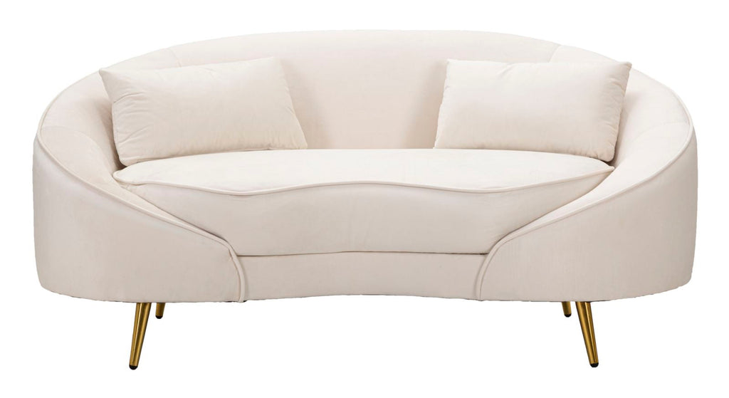 Il divanetto 2 posti in tessuto imbottito beige offre un'elegante soluzione per arredare il proprio salotto. Le sue linee morbide e avvolgenti creano un ambiente accogliente e confortevole per rilassarsi dopo una lunga giornata. Le gambe in metallo dorato conferiscono un tocco di classe e luminosità all'ambiente. Completo di 2 cuscini, questo divanetto diventerà il punto focale di ogni spazio living.
