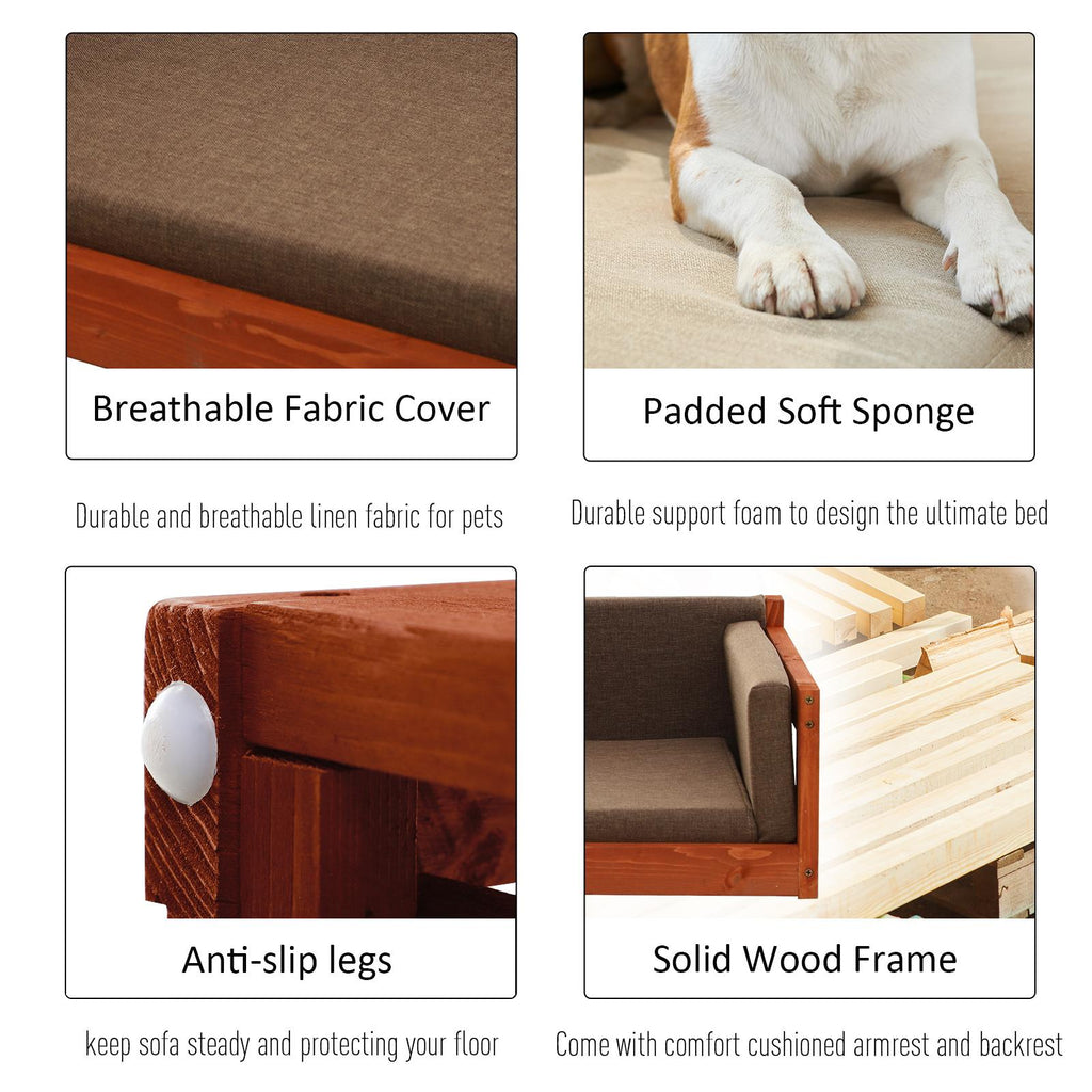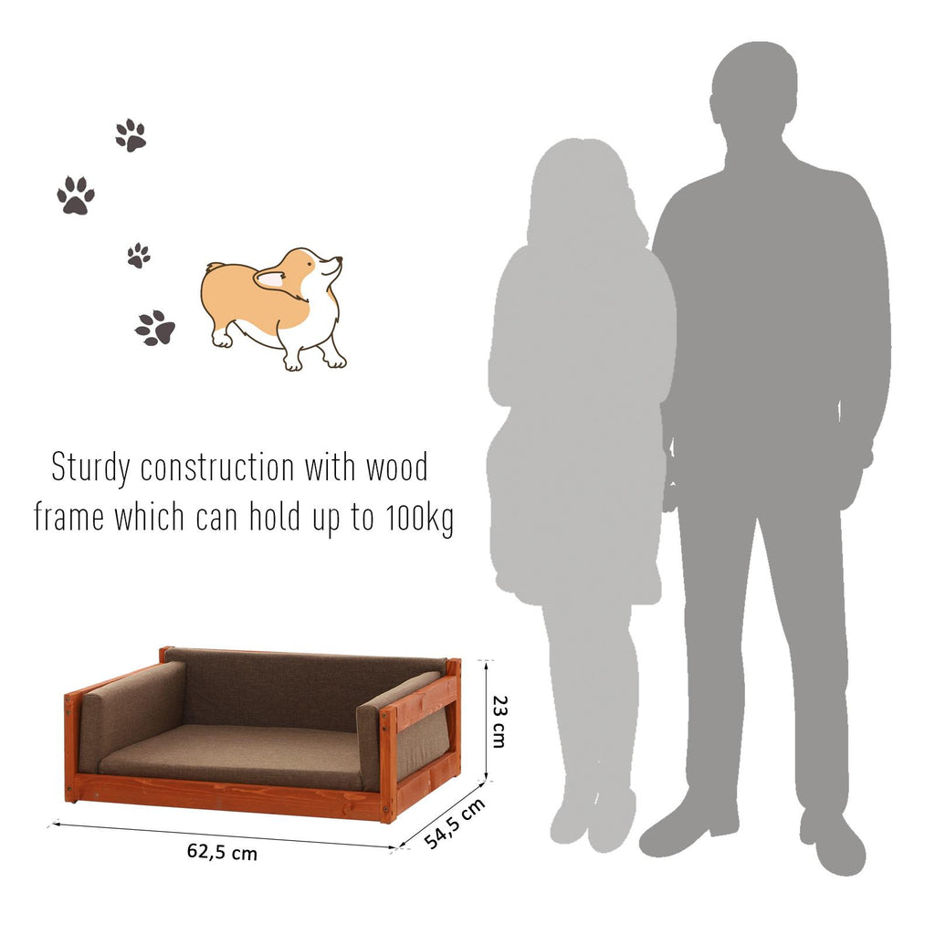 Sofa für Hunde und Katzen 62,5x54,5x23 cm in Holz mit Kissen Oklahoma