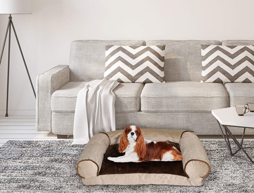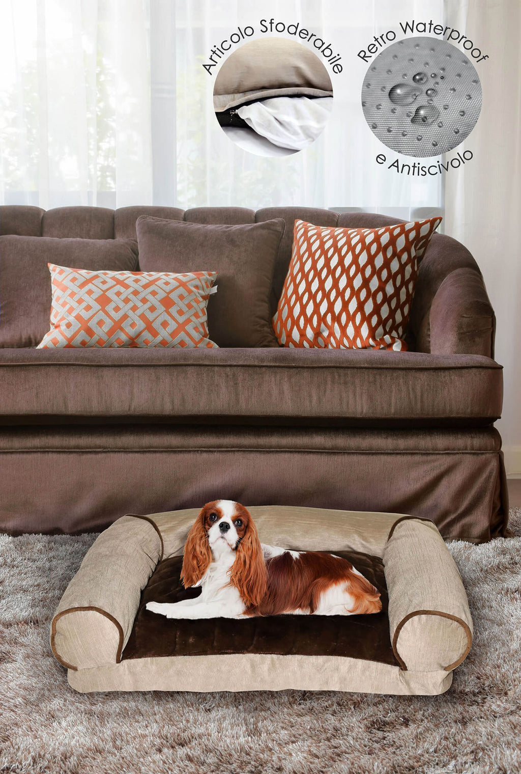 Gepolsterter Sofateppich für Hunde und Katzen, Braun und Creme