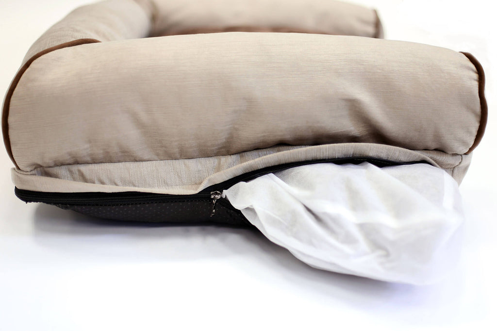 Pets entspannendes Polstersofa für Hunde und Katzen. Vollständig abnehmbarer Artikel mit Reißverschluss sowohl für die Basis als auch für die Armlehne.