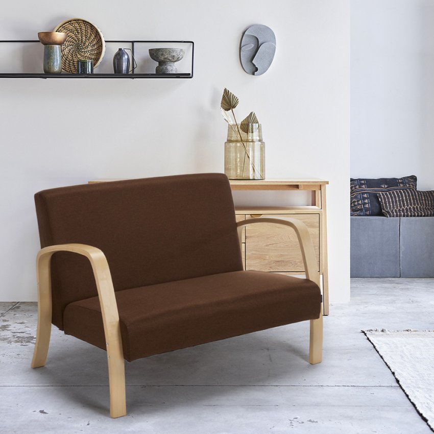2-Sitzer-Sofa 112 x 70 x 80 cm in Holz und dunkelgrauem Stoff