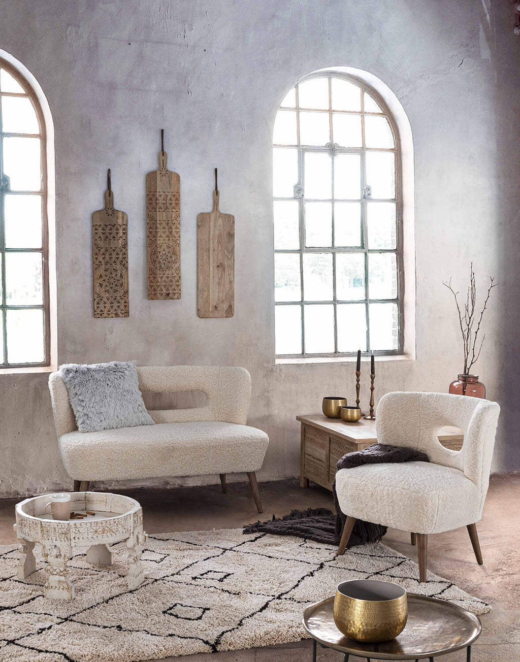 2-Sitzer-Sofa 115 x 68 x 78 cm aus Polyester in Holz- und Cortina-Wolloptik