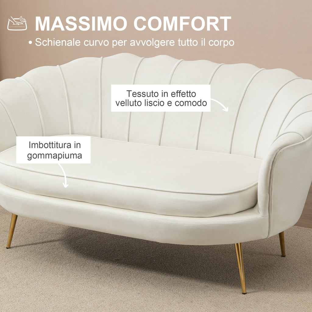 2-Sitzer-Sofa 130 x 77 x 77 cm in cremefarbenem Samt