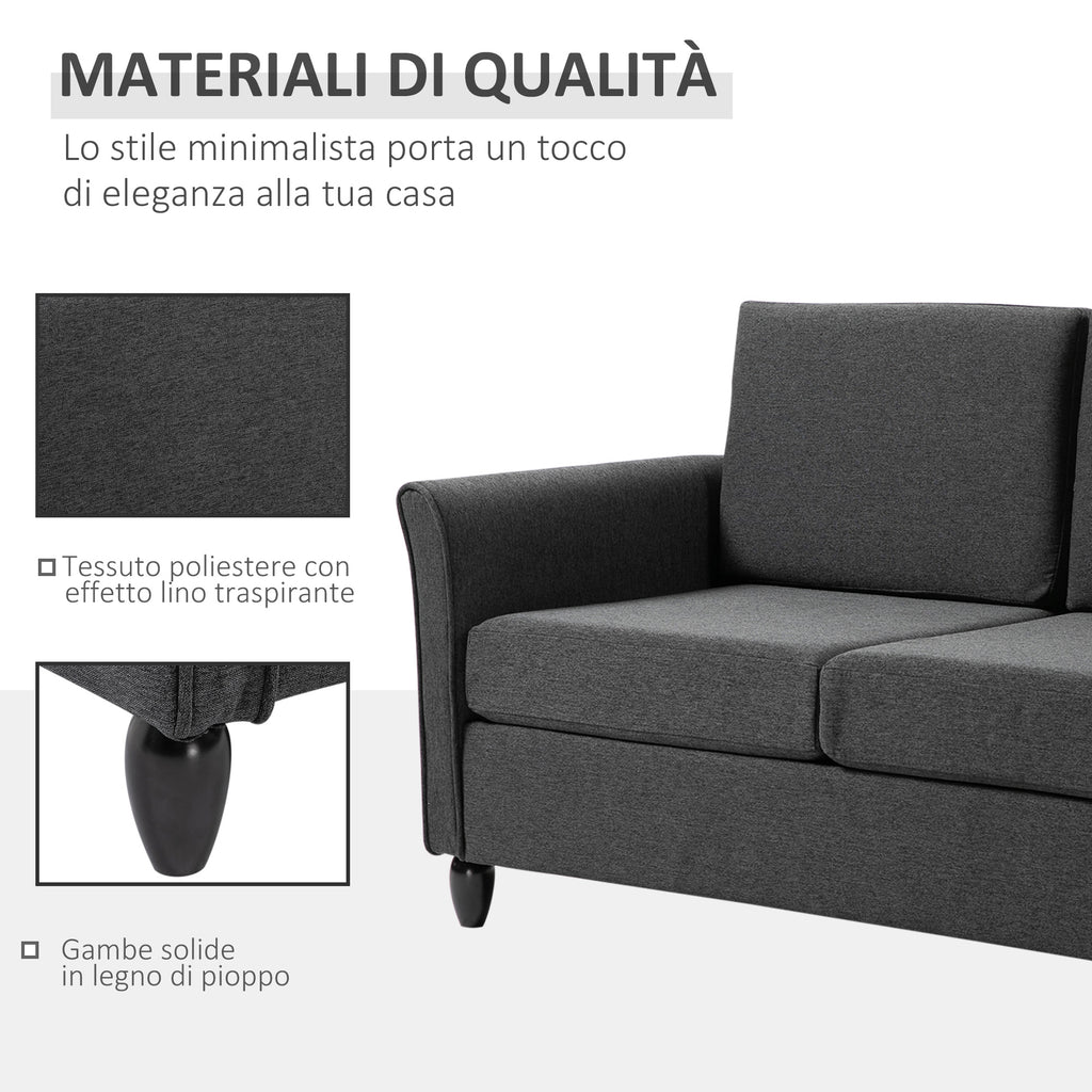 2-Sitzer-Sofa 141 x 65 x 78 cm, gepolstert mit dunkelgrauem Leinenbezug