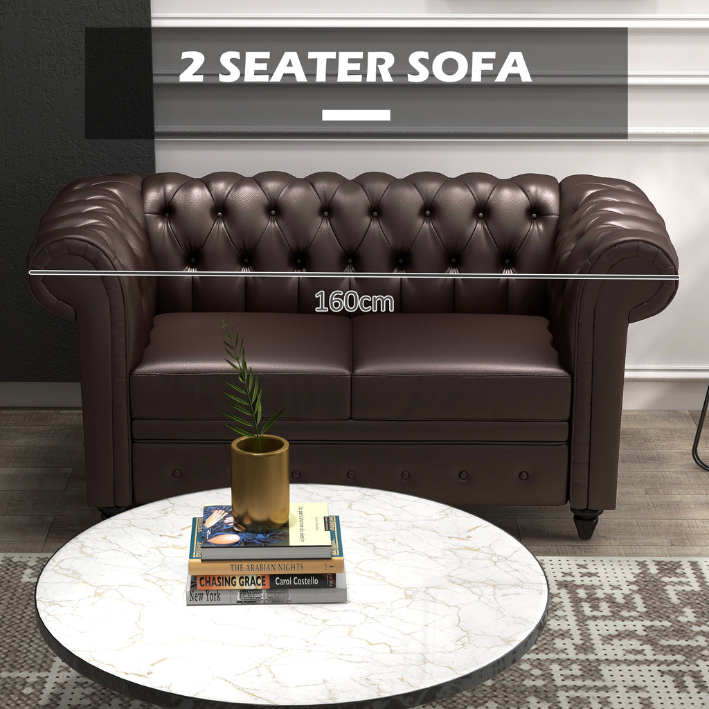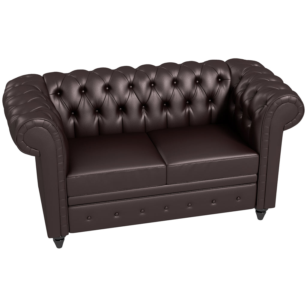 Questo elegante divano 2 posti in stile Chesterfield è un classico in grado di inserirsi in qualunque appartamento. Rivestito in pelle PU e con uno schienale trapuntato, il mobile è perfetto per trasformare il tuo salotto in una stanza elegante e raffinata per accogliere a dovere i tuoi ospiti. La struttura in legno e le gambe solide si rivelano semplici da pulire. Arreda per bene la tua casa e condividi questo fantastico divano classico per serate e pomeriggi in compagnia