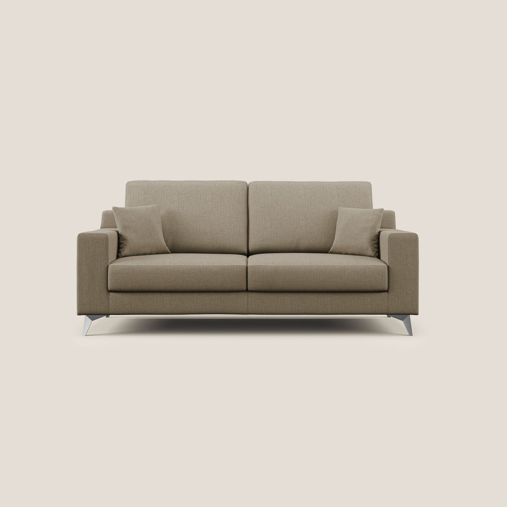 Il divano è un elegante e versatile elemento d'arredo realizzato in tessuto impermeabile. Disponibile in diverse misure e colori, si adatta a ogni esigenza di spazio e design. I piedini in metallo alti 13 cm conferiscono leggerezza ed estetica al divano, facilitando anche la pulizia sotto di esso. Grazie alla sua manifattura italiana e alla struttura robusta, il divano offre un comfort duraturo. Inoltre, il tessuto morbido impermeabile permette di rimuovere le macchie facilmente e può essere lavato in lavatrice a 30°.