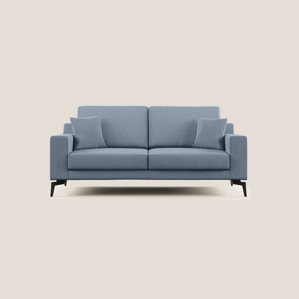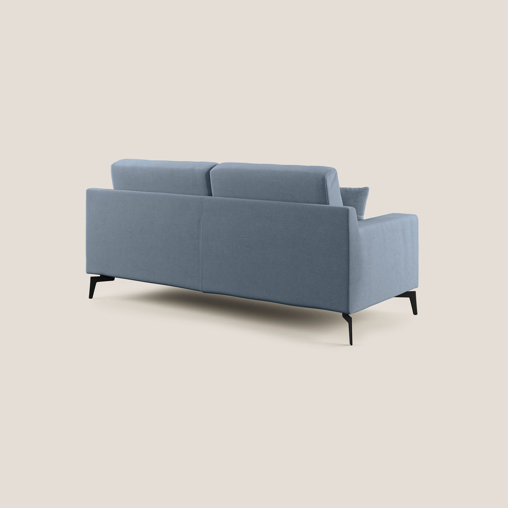 Il divano lineare è realizzato in microfibra tecnica, che lo rende smacchiabile ed impermeabile. Grazie ai piedini in acciaio colore antracite, alti 17 cm, e all'altezza dei cuscini di seduta, il divano trasmette un'immagine di estrema eleganza ed equilibrio formale. Disponibile in diverse misure e colori, questo divano made in Italy è impreziosito da una ricercata manifattura artigianale e da rivestimenti che aggiungono ricercati dettagli "haute couture". I materiali di qualità, scelti nel rispetto dell'ambiente, oltre alla ribattitura in fase di cucito, contribuiscono a rendere il divano un elemento pregiato all'interno della zona living. La sfoderabilità totale del divano e l'alta densità dei materiali della seduta e dello schienale ne esaltano le caratteristiche e la qualità. In sintesi, il divano unisce eleganza, funzionalità e qualità.