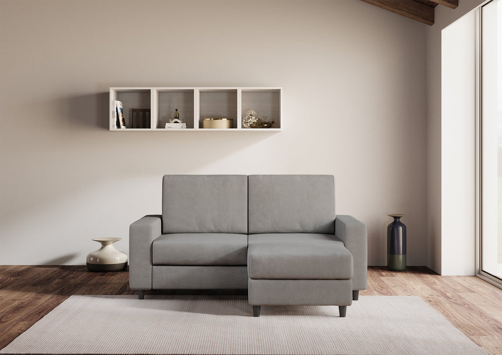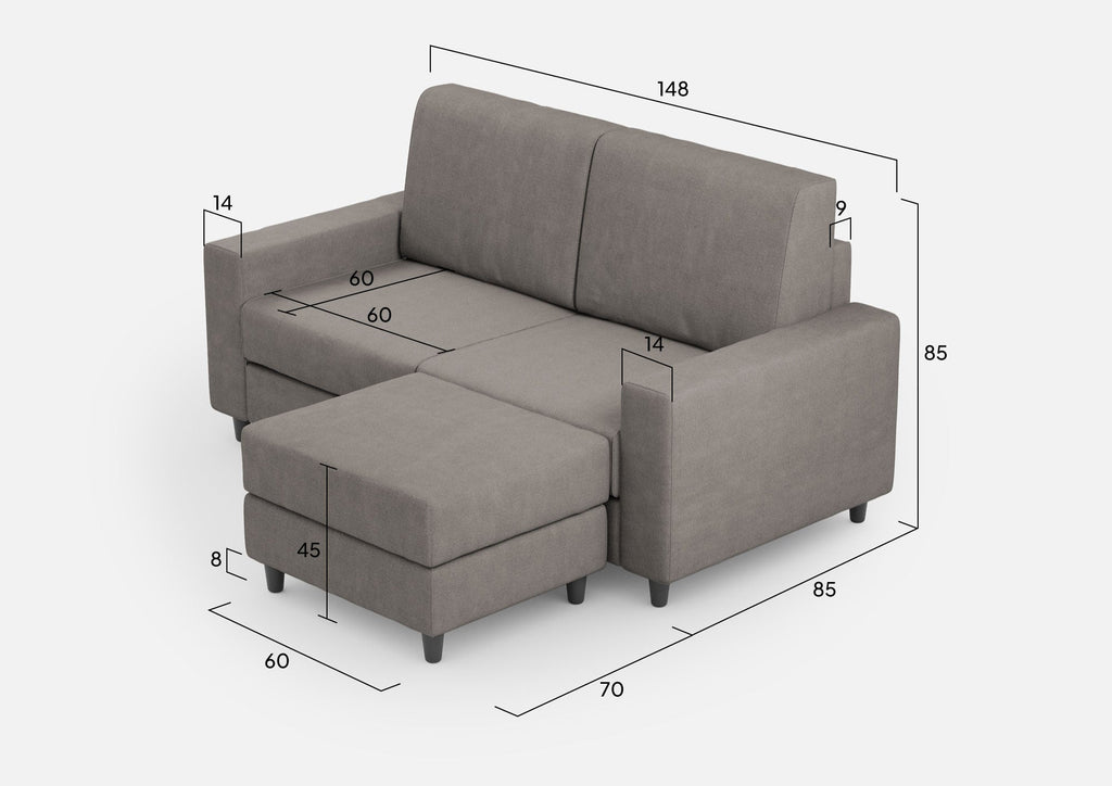 Divano 2 Posti con Pouf 148x155x85 cm Sakar in Tessuto Grigio