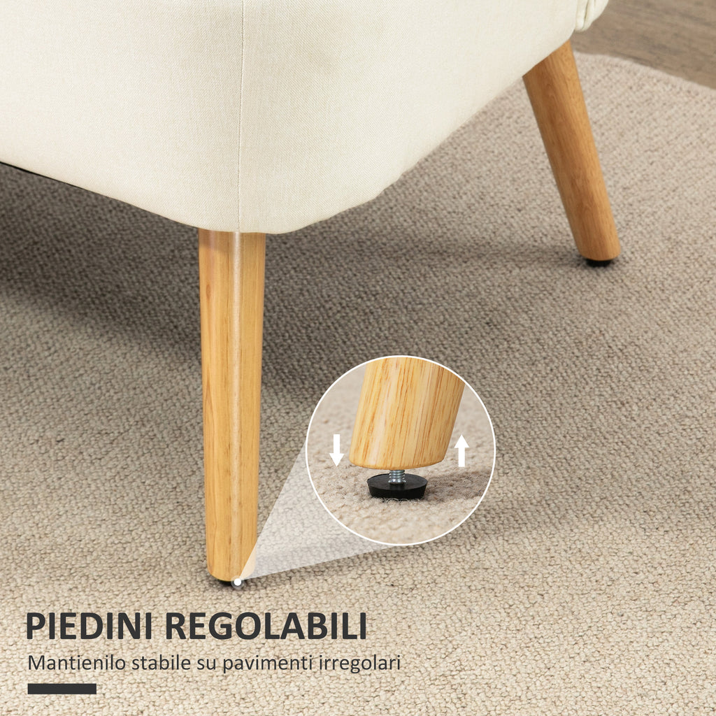 Divano 2 Posti Design Moderno 117x56.5x77 cm Tessuto Effetto Lino e Legno di Caucciù Crema