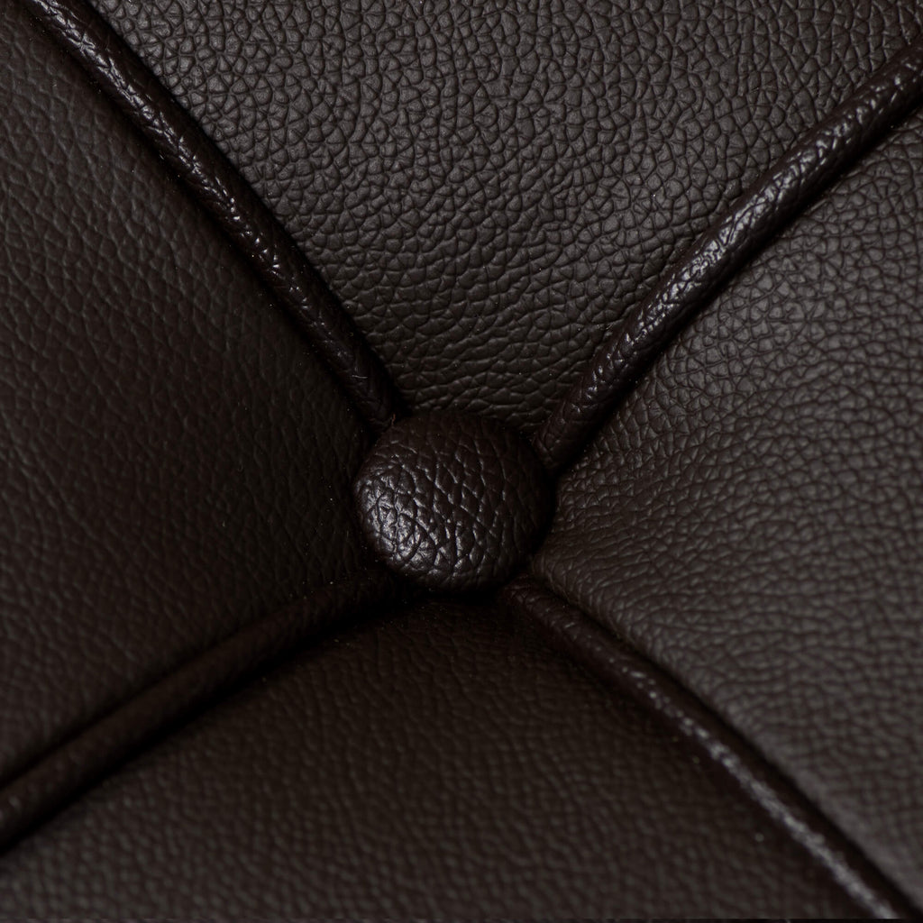 Bezug aus Kunstleder , erhältlich in Weiß und Braun, Struktur aus verchromtem Stahl.