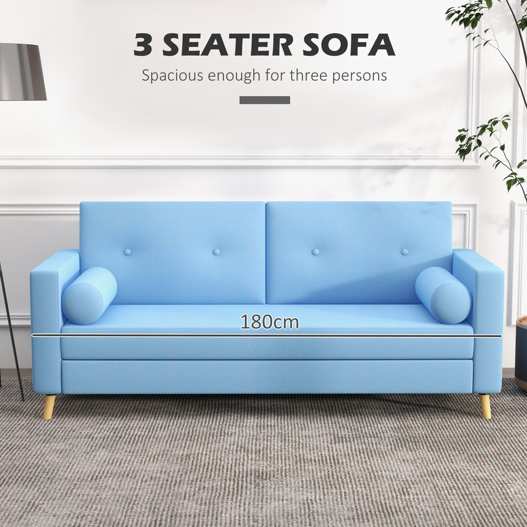 Divano 3 Posti 180x81x83 cm in Tessuto Azzurro
