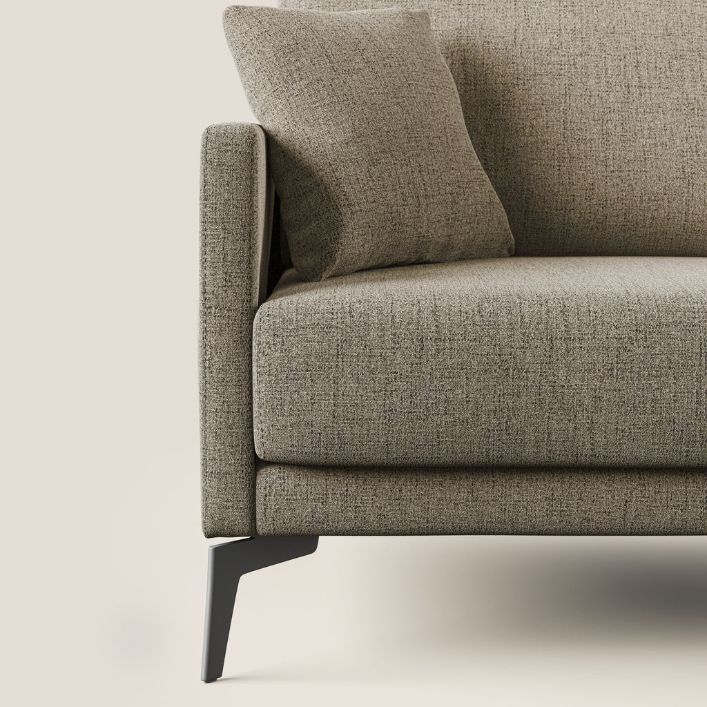 - Divano con struttura in acciaio, tessuto morbido ed impermeabile, e piedini neri alti 17 cm