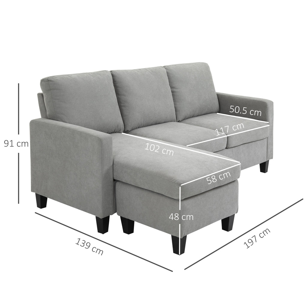 3-Sitzer-Sofa 197 x 139 x 91 cm mit Wendehalbinsel in grauem Stoff