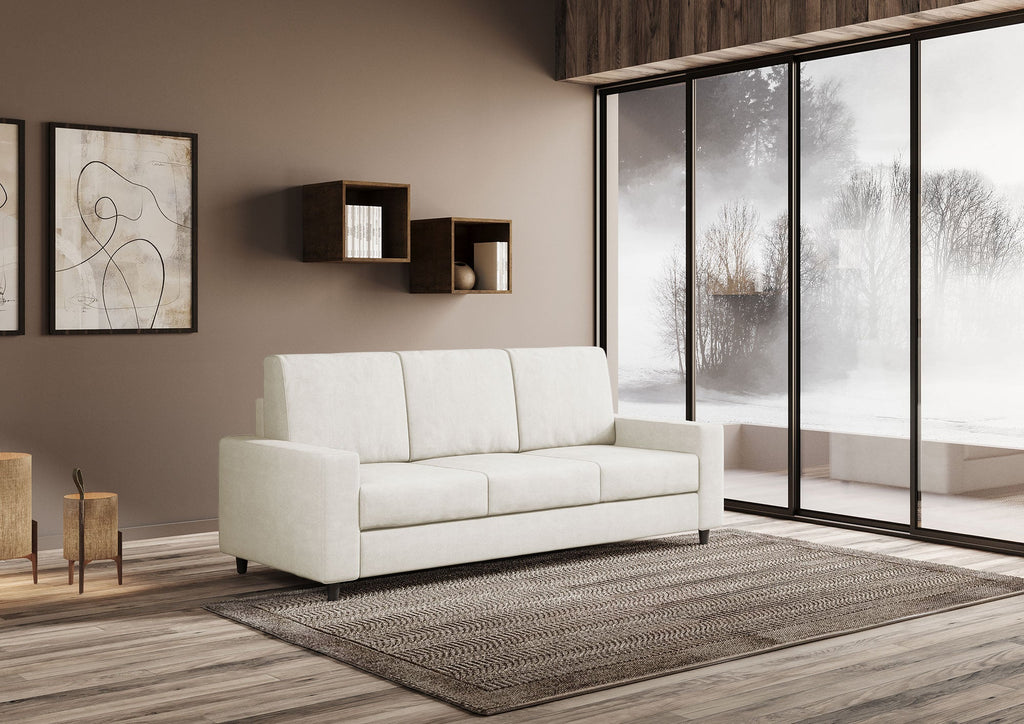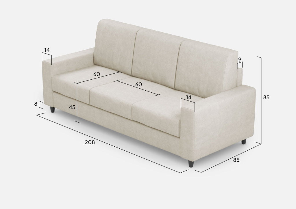Divano 3 Posti 208x85x85 cm Sakar in Tessuto Latte