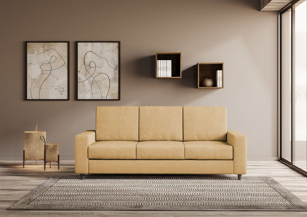 Divano 3 Posti 208x85x85 cm Sakar in Tessuto Ocra