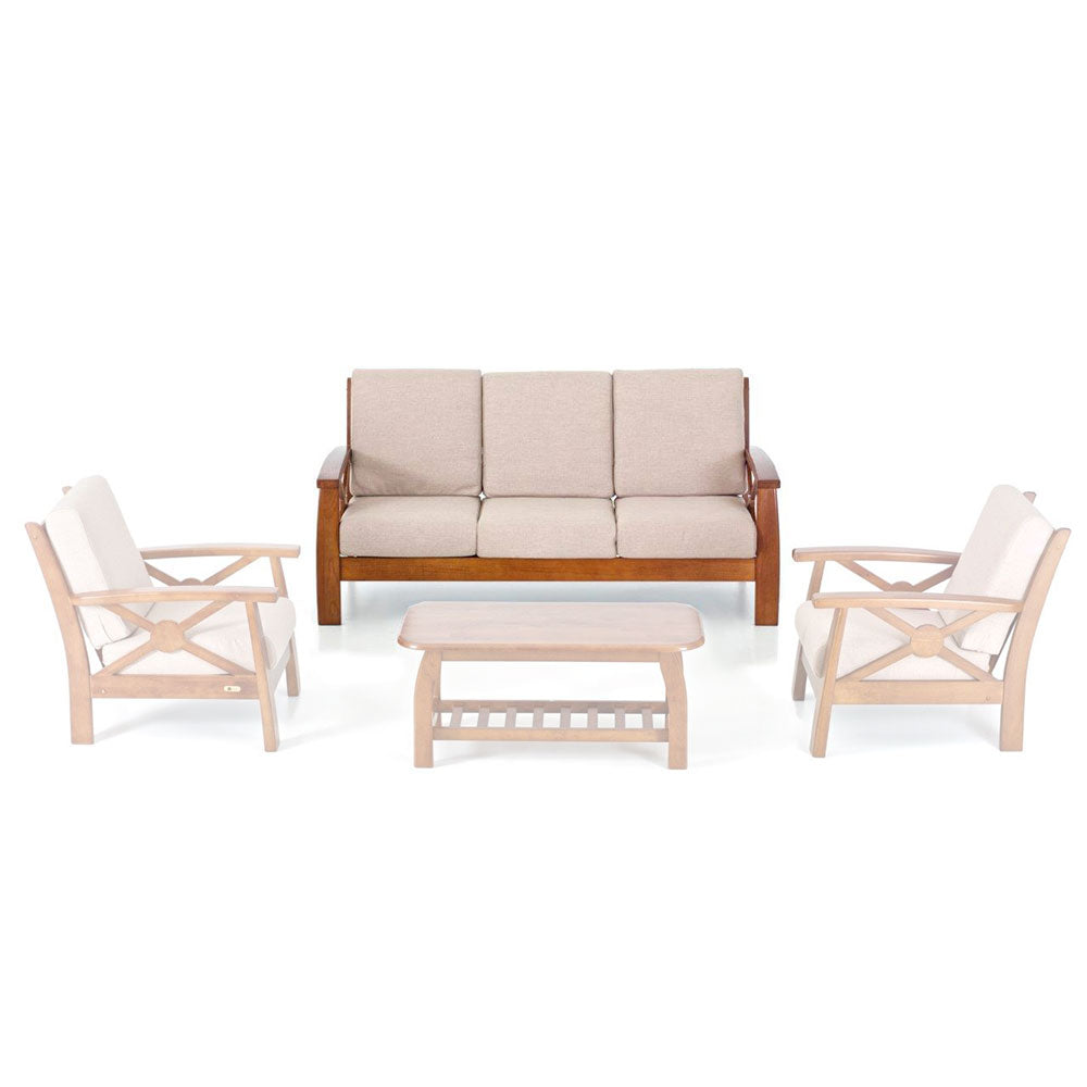 3-Sitzer-Sofa mit Massivholzstruktur.
